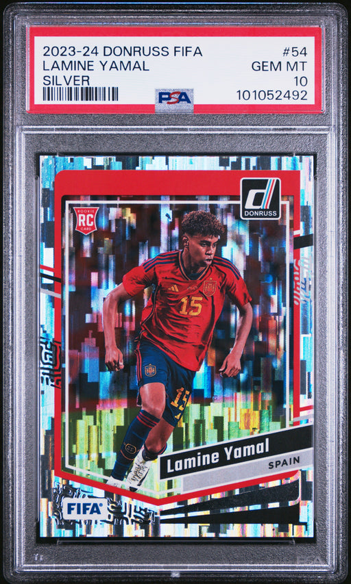 Gorgeous, PSA-graded 2023 Donruss trading card of Lamine Yamal of the Barcelona. This is a PSA GEM-MT 10 (Gem Mint) collectible card. This card is ...