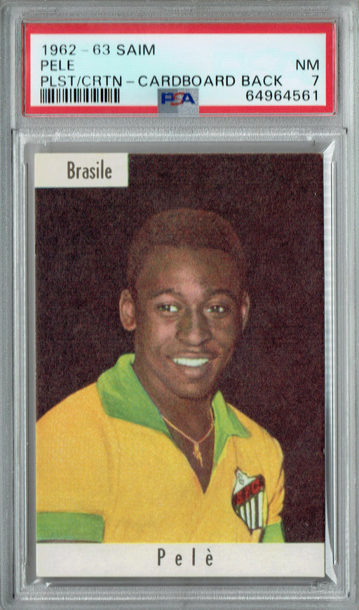 Gorgeous, PSA-graded 1962 Saim trading card of Pele of Brazil in incredible condition. This card is art and a PSA NM 7 (Near Mint) collectible card...