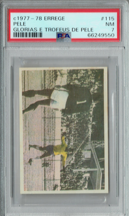 Gorgeous, PSA-graded 1977 Errege trading card of Pele of the Brazil. This is a PSA NM 7 (Near Mint) collectible card. This card is protected within...