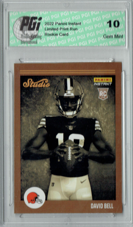 Gorgeous 2022 Panini Instant rookie card of David Bell. This card has been graded by Pristine Grading International (PGI), a leading grader of trad...