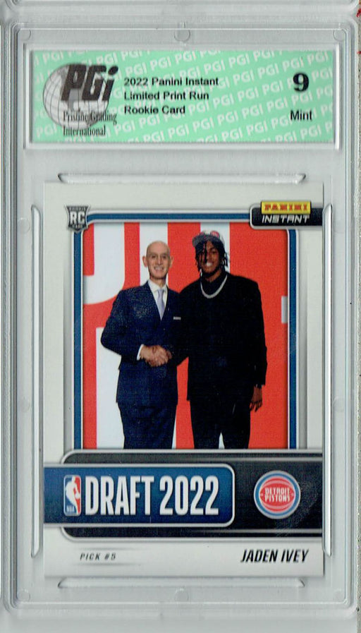Gorgeous 2022 Panini Instant rookie card of Jaden Ivey. This card has been graded by Pristine Grading International (PGI), a leading grader of trad...