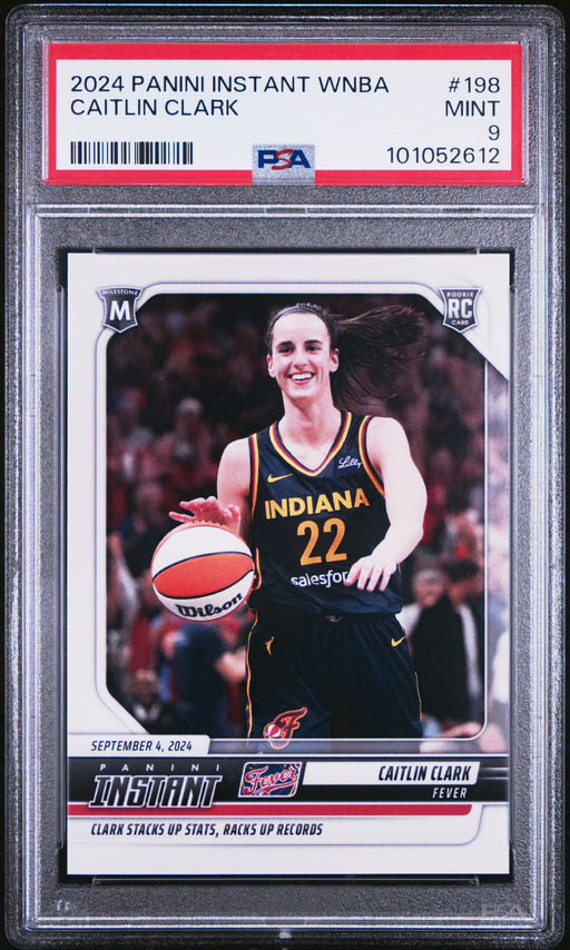 Gorgeous, PSA-graded 2024 Panini Instant trading card of Caitlin Clark of the Indiana Fever. This is a PSA MINT 9 (Mint) collectible card. This car...