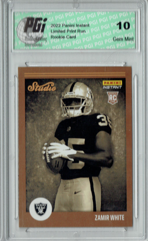 Gorgeous 2022 Panini Instant rookie card of Zamir White. This card has been graded by Pristine Grading International (PGI), a leading grader of tra...