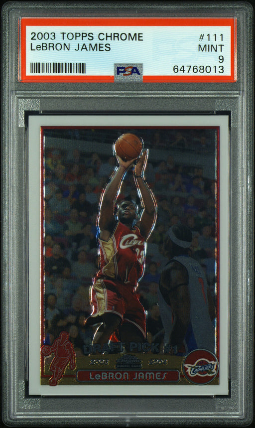 Gorgeous, PSA-graded 2003 Topps Chrome trading card of LeBron James of the Los Angeles Lakers. This is a PSA MINT 9 (Mint) collectible card. This c...