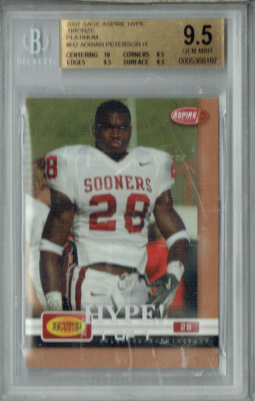 Gorgeous 2007 Sage Aspire Hype rookie card of Adrian Peterson. This card is protected within the Beckett Grading Services tamper resistant holder a...