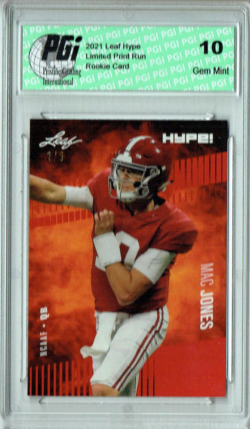 Gorgeous 2021 LEAF HYPE! rookie card of Mac Jones. This card has been graded by Pristine Grading International (PGI), a leading grader of trading c...