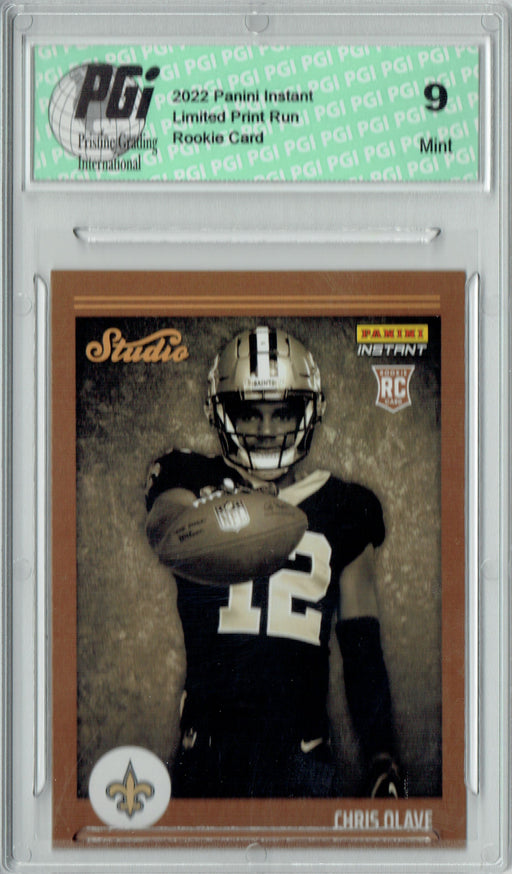 Gorgeous 2022 Panini Studio rookie card of Chris Olave . This card has been graded by Pristine Grading International (PGI), a leading grader of tra...
