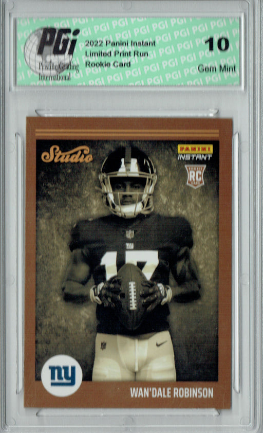 Gorgeous 2022 Panini Studio rookie card of Wan'Dale Robinson . This card has been graded by Pristine Grading International (PGI), a leading grader ...