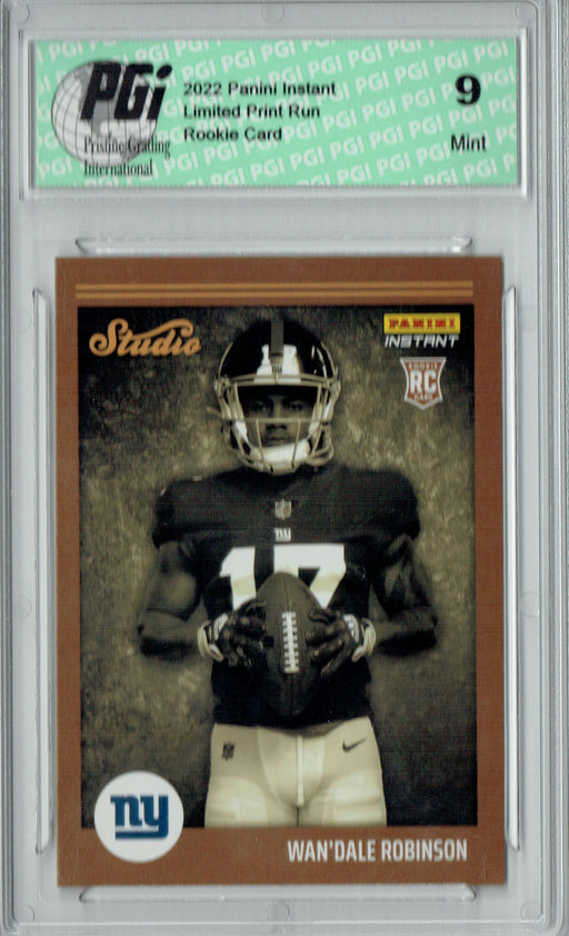 Gorgeous 2022 Panini Studio rookie card of Wan'Dale Robinson . This card has been graded by Pristine Grading International (PGI), a leading grader ...