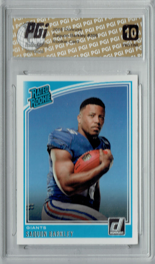 Gorgeous PGI 2018 Donruss card of Saquon Barkley. Grading provides buyers with the peace of mind knowing they have a card in mint condition and tha...