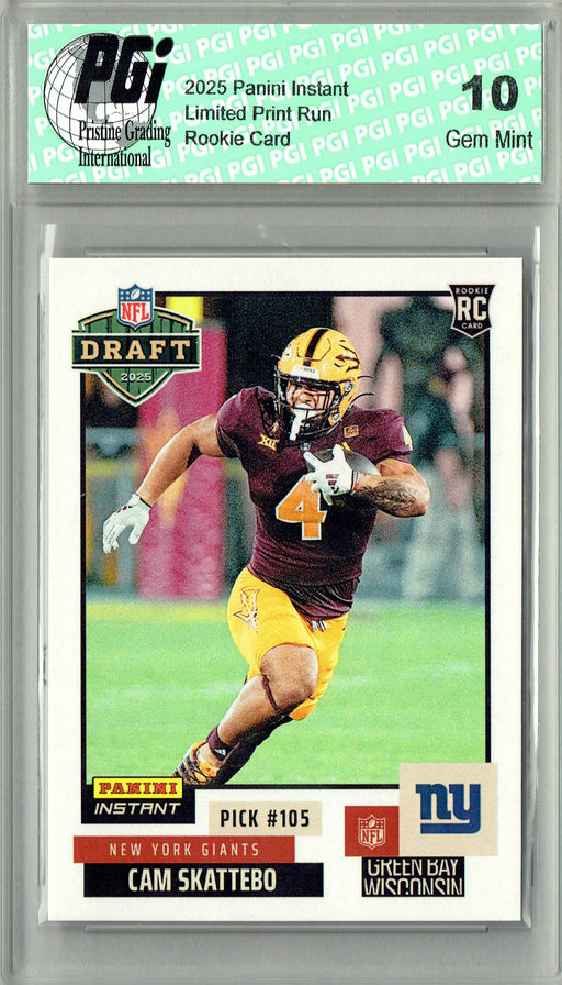 Gorgeous 2025 Panini Instant rookie card of Cam Skattebo of the New York Giants. This card has been graded by Pristine Grading International (PGI),...