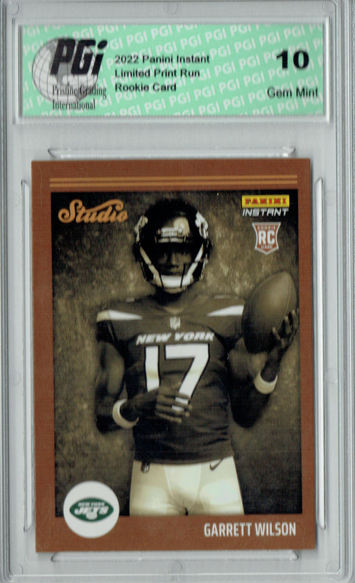Gorgeous 2022 Panini Studio rookie card of Garrett Wilson . This card has been graded by Pristine Grading International (PGI), a leading grader of ...