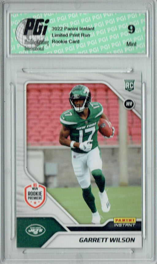 Gorgeous 2022 Panini Instant rookie card of Garrett Wilson. This card has been graded by Pristine Grading International (PGI), a leading grader of ...