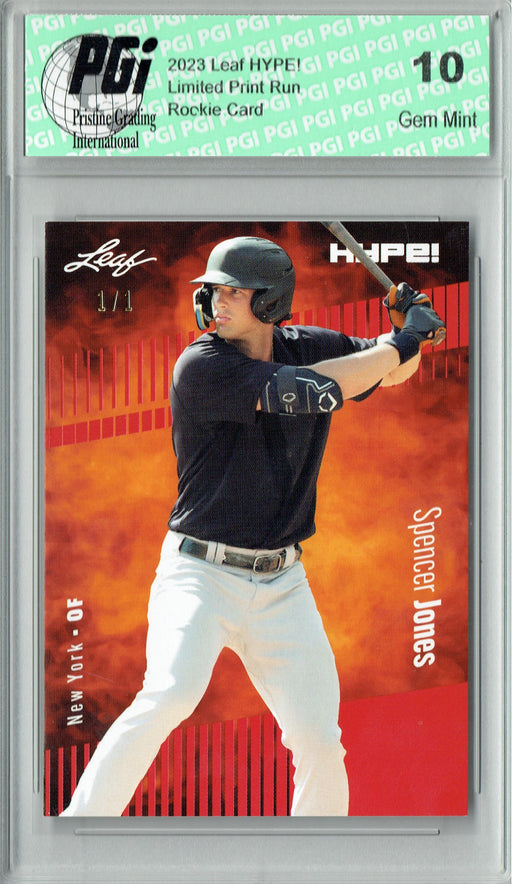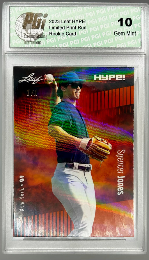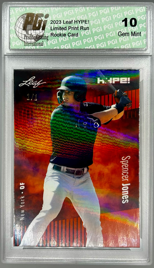 Gorgeous 2023 Bowman rookie card of Spencer Jones. This card has been graded by Pristine Grading International (PGI), a leading grader of trading c...