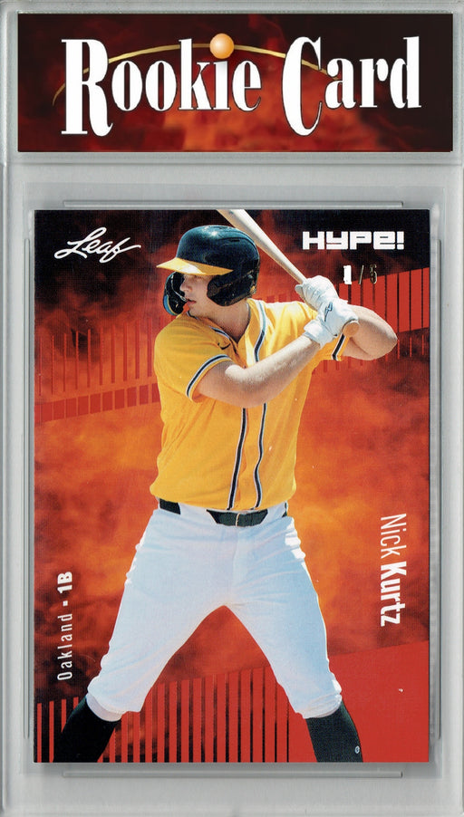 Gorgeous, exclusive 2024 Leaf HYPE! rookie card of Nick Kurtz of the Oakland Athletics. True Gold foil numbered One of One of the kid who hit four ...
