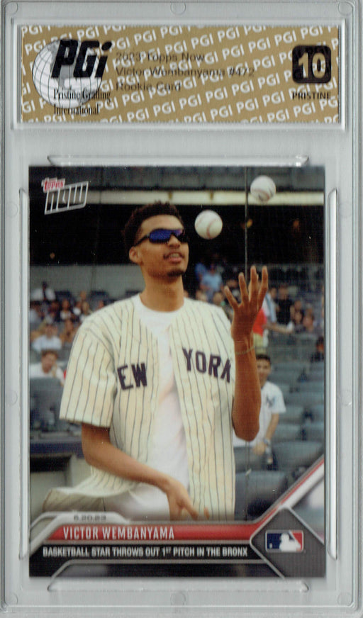 Gorgeous 2023 Topps Now rookie card of Victor Wembanyama. This card has been graded by Pristine Grading International (PGI), a leading grader of tr...