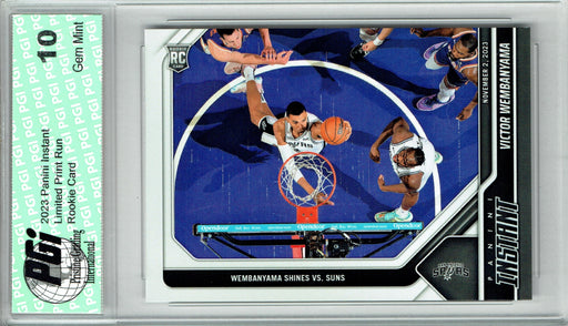 Gorgeous 2023 Panini Instant rookie card of Victor Wembanyama. This card has been graded by Pristine Grading International (PGI), a leading grader ...