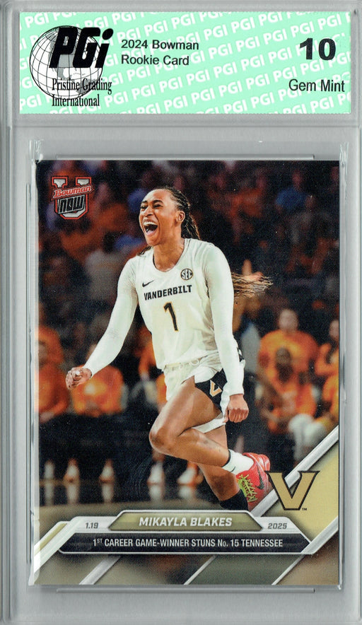Gorgeous 2024 Bowman University Now rookie card of Mikayla Blakes of the Vanderbilt Commodores. This card has been graded by Pristine Grading Inter...