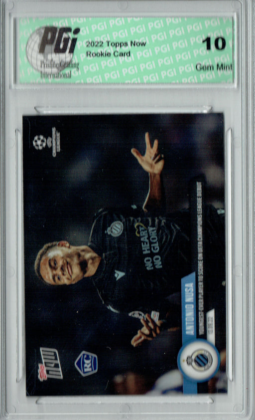 Gorgeous 2022 Topps Now rookie card of Antonio Nusa. This card has been graded by Pristine Grading International (PGI), a leading grader of trading...