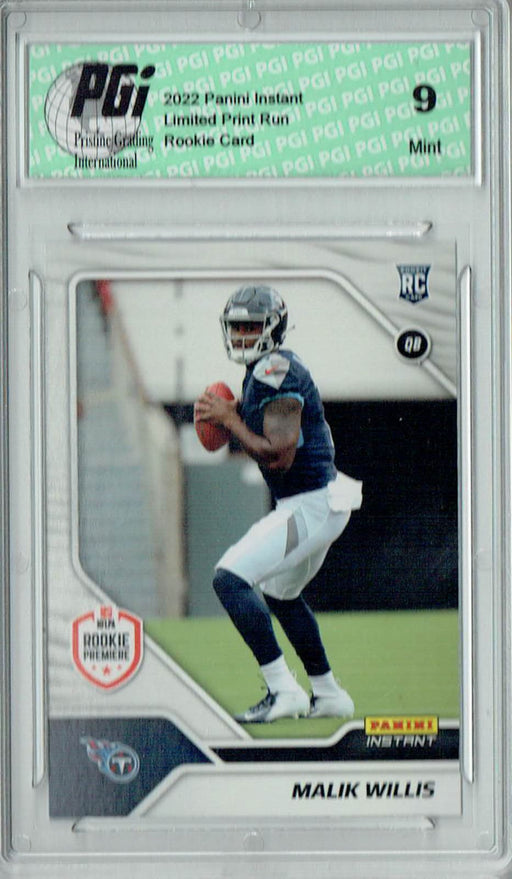 Gorgeous 2022 Panini Instant rookie card of Malik Willis . This card has been graded by Pristine Grading International (PGI), a leading grader of t...