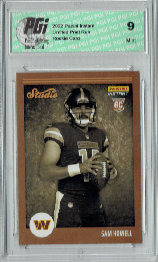 Gorgeous 2022 Panini Instant rookie card of Sam Howell. This card has been graded by Pristine Grading International (PGI), a leading grader of trad...