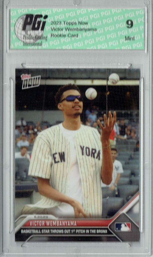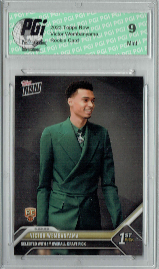 Gorgeous 2023 Topps Now rookie card of Victor Wembanyama. This card has been graded by Pristine Grading International (PGI), a leading grader of tr...