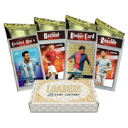The fun is back in the pack with LOADED! LUX Edition Soccer trading card boxes. These boxes are brimming with value. LOADED! LUX is trading card luxury, delivering superior trading cards that are incredibly limited, serial numbered special editions. Your box will include four great cards from Leaf HYPE!, Leaf Vaunted, and Leaf Metal print runs in Certified Mint+ condition. They'll be individually sealed in foil packs waiting to be opened. What 4 cards will you get? In every LOADED! LUX box you will get four limited edition soccer cards from the gorgeous Leaf HYPE!, Vaunted or Metal collections. Even the base cards are limited to 5000 made. Every single box contains at least two super rare parallel cards - limited to 25, 20, 15, 10, 7, 5, 3 or 2 made, or even a true 1 of 1. Serial numbered right on the card. Some boxes will include authentic and truly rare printing plates! This box is all studs, no duds. Every card is a rookie or a short print, or both, of the Beautiful Game's GOATs, living legends, and brightest prospects. Every card is licensed by the player. LOADED! LUX will only contain the following players so you know it's the best of the best: Lamine Yamal, Lionel Messi, Erling Haaland, Pele, Cristiano Ronaldo, Endrick, Julian Alvarez, Zinedine Zidane, Alejandro Garnacho, Kevin De Bruyne, and Vinicius Vini Jr. Note that every single LOADED! LUX box is an experience. Your four (4) collectible, encapsulated cards will arrive safely, gold-foil wrapped, in a gorgeous flip-top box. LOADED! LUX boxes are gift-ready every single time. Remember that in every LUX box at least two cards will be numbered to 25 or less, ensuring amazing value. Each slabbed card is in Certified Mint+ condition or better, sealed in an air-tight customized holder using a sonic welding system. Every card is thoroughly reviewed. Only the best are encapsulated in tamper resistant holders. They're ready for high end grading if that�s your thing.