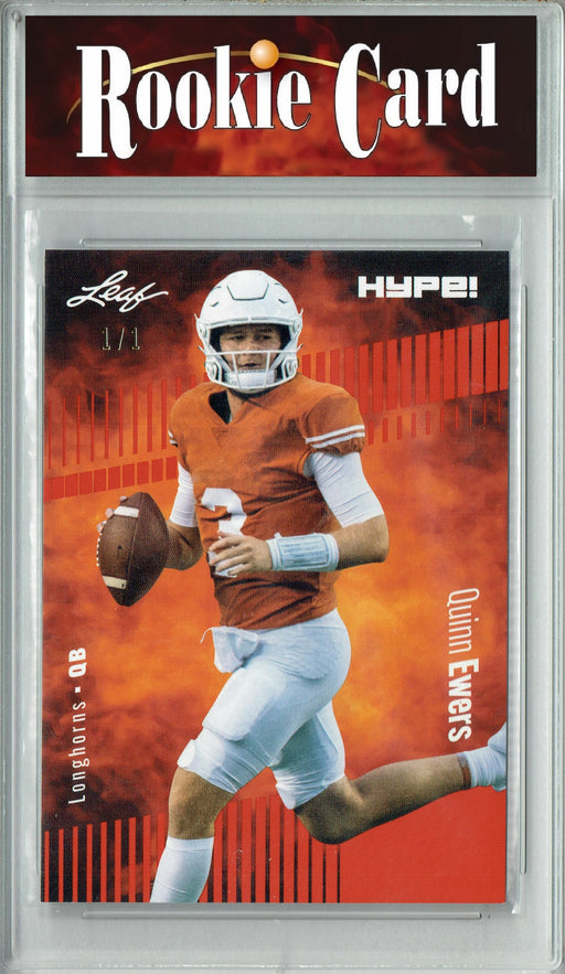 Gorgeous and rare 2023 Leaf HYPE! rookie card of Quinn Ewers of the Texas Longhorns, from a limited print run. This card comes from the super short...