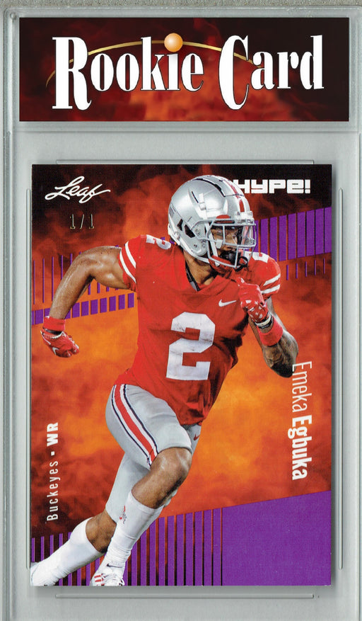 Gorgeous and rare 2023 Leaf HYPE! rookie card of Emeka Egbuka of the Ohio State Buckeyes, from a limited print run. This is an incredible opportuni...