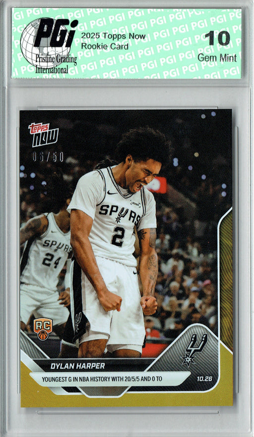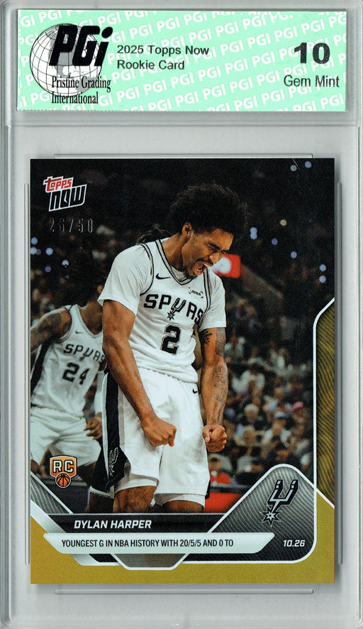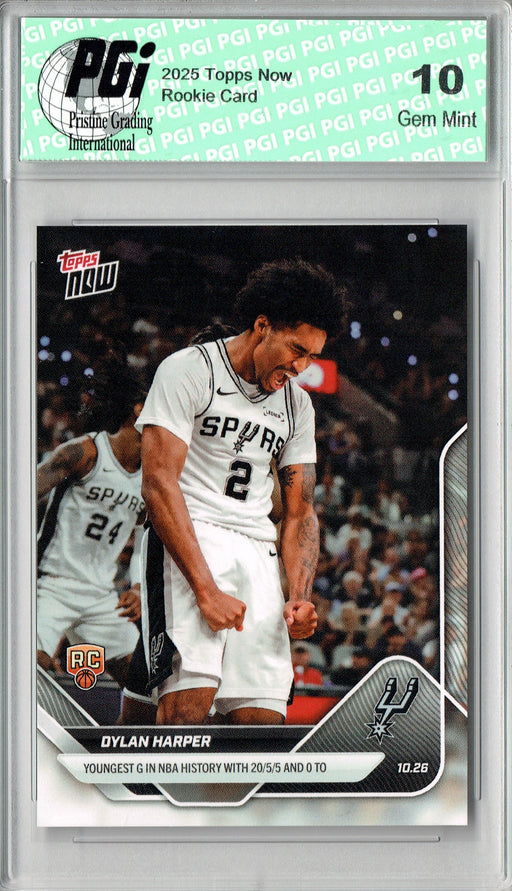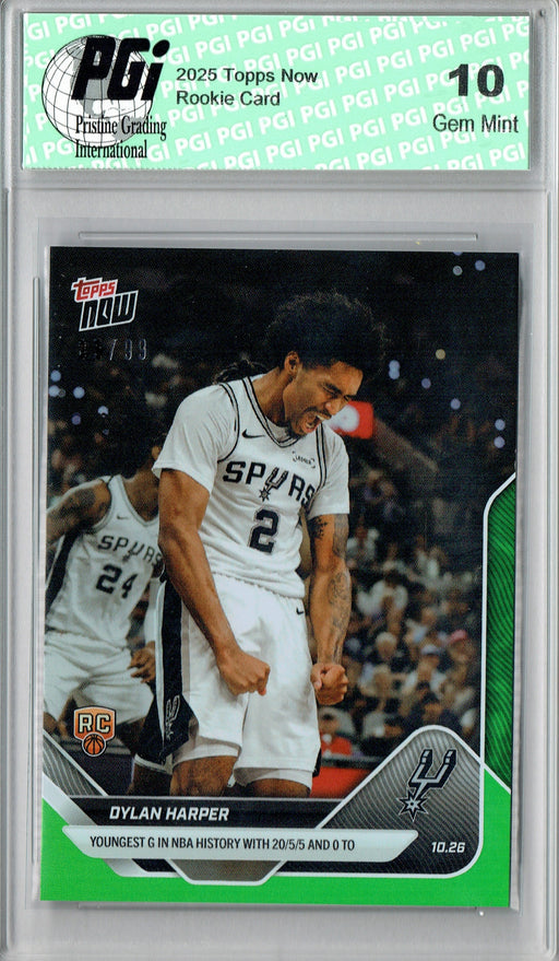 Gorgeous 2025 Topps Now rookie card of Dylan Harper of the San Antonio Spurs. This card has been graded by Pristine Grading International (PGI), a ...