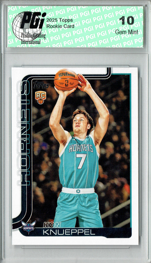 Gorgeous 2025 Topps rookie card of breakout star, Kon Knueppel of the Charlotte Hornets. This card has been graded by Pristine Grading Internationa...