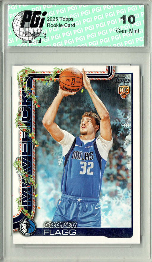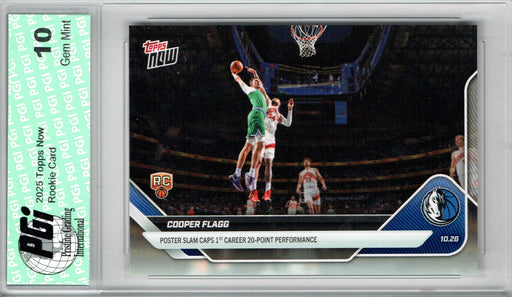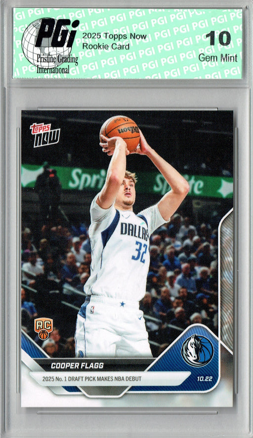 Gorgeous 2025 Topps Now rookie card of Cooper Flagg of the Dallas Mavericks. This card has been graded by Pristine Grading International (PGI), a l...