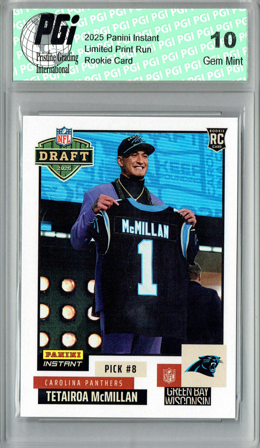 Gorgeous 2025 Panini Instant rookie card of Tetairoa McMillan of the Carolina Panthers. This card has been graded by Pristine Grading International...