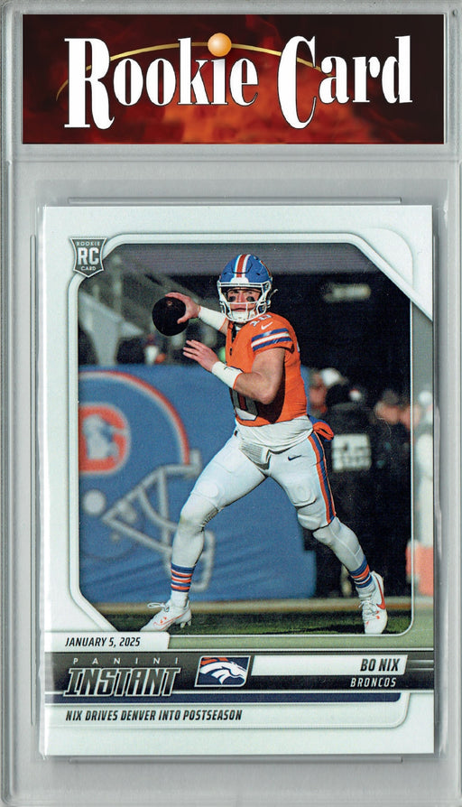 Gorgeous 2024 Panini Instant rookie card of Bo Nix of the Denver Broncos. This card was from earlier in the season before Nix became a star and th...