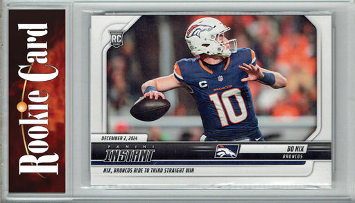 Gorgeous, exclusive 2024 Panini Instant rookie card of Bo Nix of the Denver Broncos. Certified Mint+ cards are uncirculated collectibles that have ...