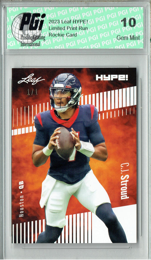 Gorgeous 2023 Panini Instant rookie card of C.J. Stroud of the Houston Texans. This card has been graded by Pristine Grading International (PGI), a...