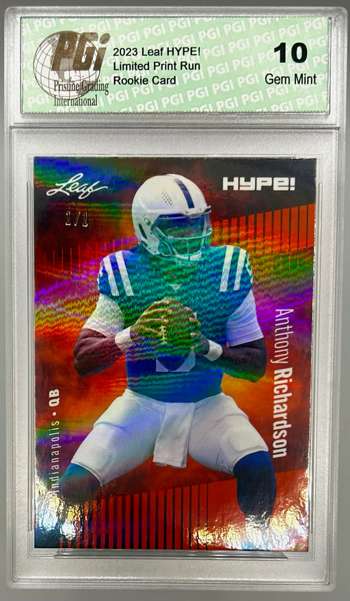 Gorgeous, PSA-graded 2023 Leaf Hype! trading card of Anthony Richardson of the Indianapolis Colts. This is a PSA GEM-MT 10 (Gem Mint) collectible c...
