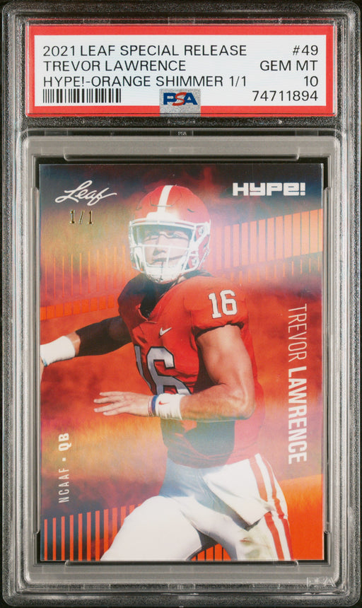 Gorgeous 2021 Leaf Hype rookie card of Trevor Lawrence. This card is protected within the PSA tamper resistant holder and is individually registere...
