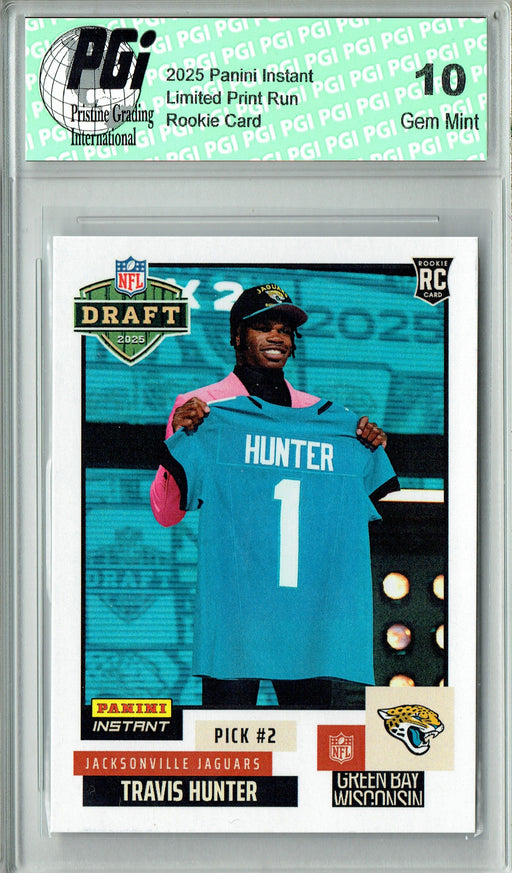 Gorgeous 2025 Panini Instant rookie card of Travis Hunter of the Jacksonville Jaguars. This card has been graded by Pristine Grading International ...