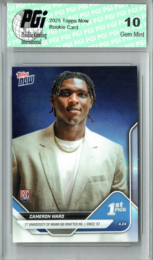 Gorgeous 2025 Topps Now rookie card of Cam Ward of the Tennessee Titans. This is his first professional card ever from Topps. It has been graded by...