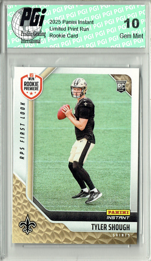 Gorgeous 2025 Panini Instant rookie card of Tyler Shough of the New Orleans Saints. This card has been graded by Pristine Grading International (PG...