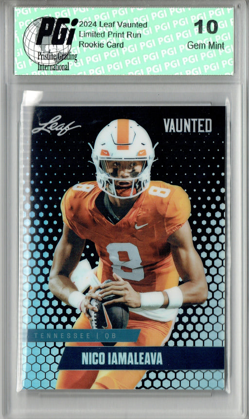 Gorgeous 2024 Leaf Vaunted Metal rookie card of Nico Iamaleava. The #1 of 2 card. One of his most beautiful cards ever. TThis card has been graded ...