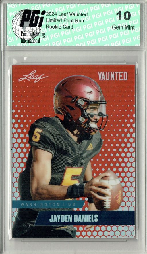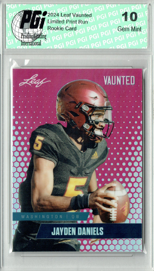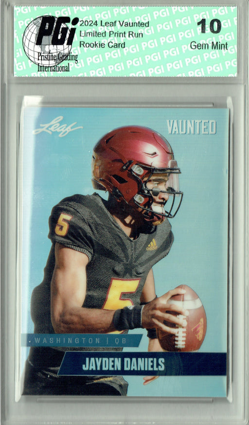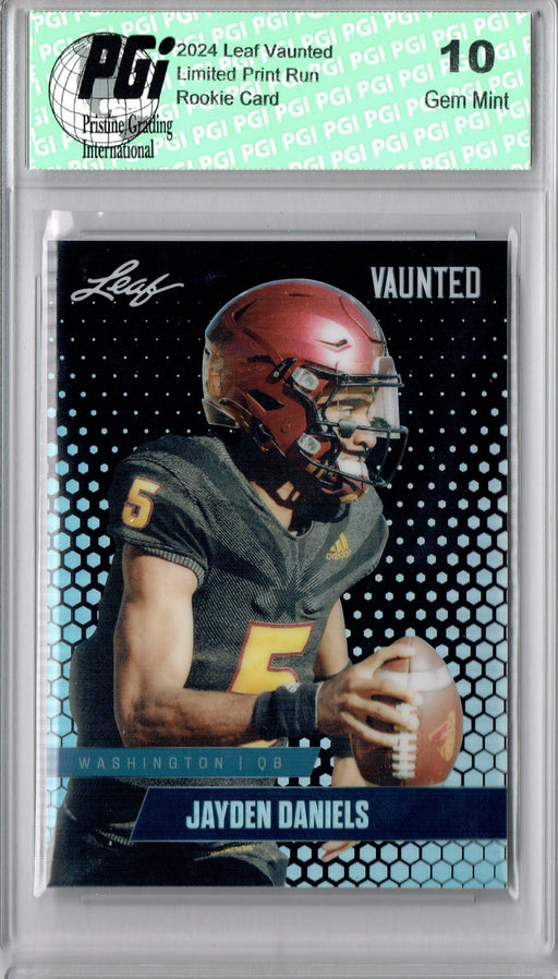 Gorgeous 2024 Leaf Vaunted Metal rookie card of Jayden Daniels of the Washington Commanders. One of his most beautiful cards ever. The serial numbe...