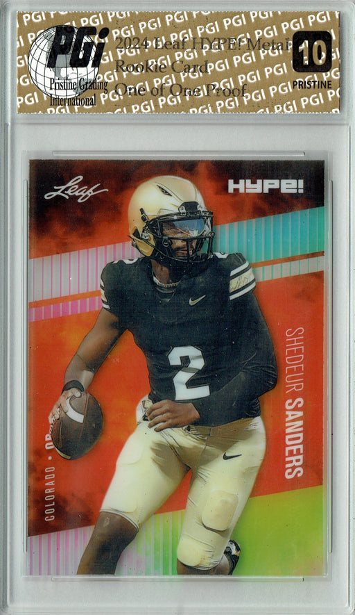 Gorgeous 2024 Leaf HYPE! Metal rookie card of Shedeur Sanders, rookie quarterback for the Cleveland Browns. Note that these "Proofs" are not serial...