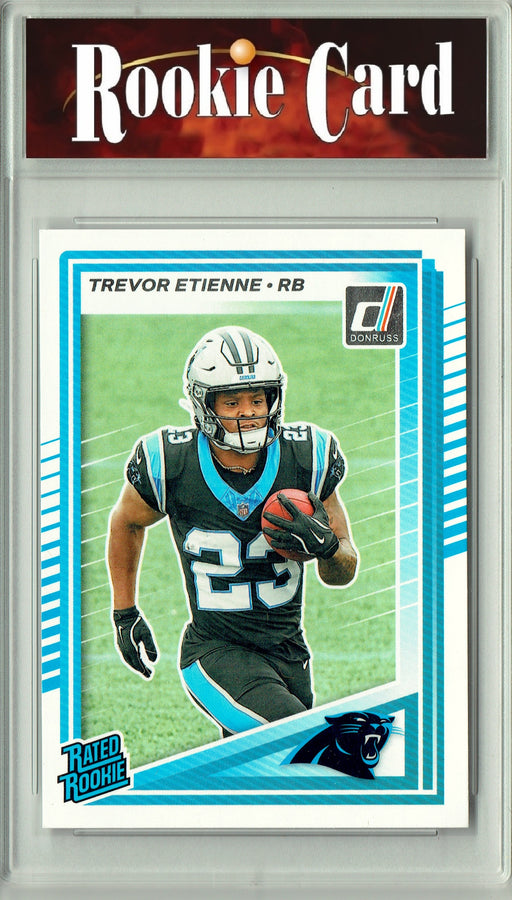 Gorgeous, exclusive 2025 Donruss Football rookie card of Trevor Etienne of the Carolina Panthers. We seek the most well-made cards in the best cond...