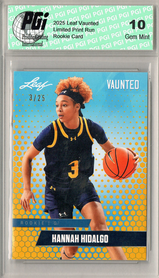 Gorgeous 2025 Leaf Vaunted rookie card of Hannah Hidalgo from Notre Dame. This card has been graded by Pristine Grading International (PGI), a lead...
