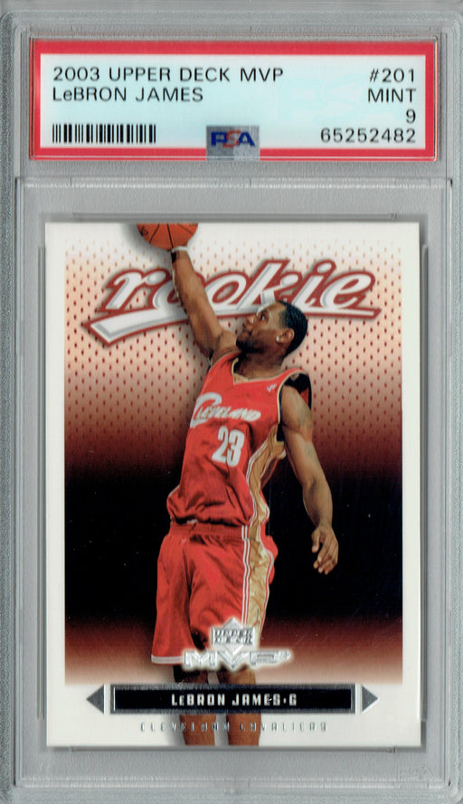 Gorgeous, PSA-graded 2003 Upper Deck trading card of LeBron James of the Los Angeles Lakers. This is a PSA MINT 9 (Mint) collectible card. This car...