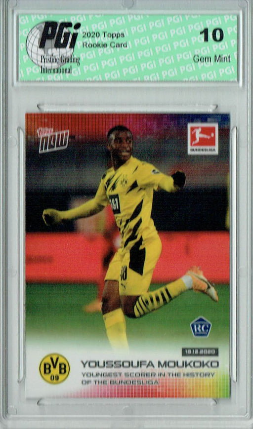 Gorgeous 2020 Topps Now rookie card of superstar Youssoufa Moukoko. Grading provides buyers with the peace of mind knowing they have a card in mint...
