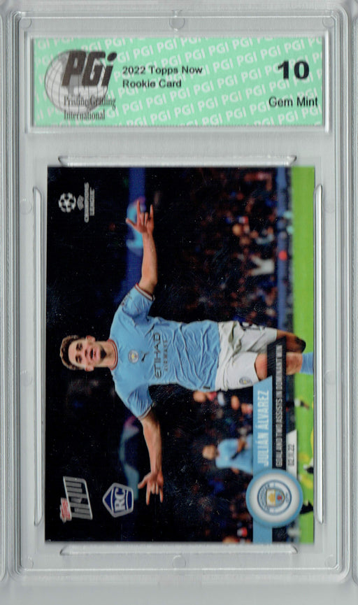 Gorgeous 2022 Topps Now rookie card of Julian Alvarez. This card has been graded by Pristine Grading International (PGI), a leading grader of tradi...