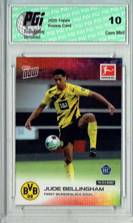 Gorgeous 2020 Topps Now rookie card of superstar Jude Bellingham. Grading provides buyers with the peace of mind knowing they have a card in mint c...